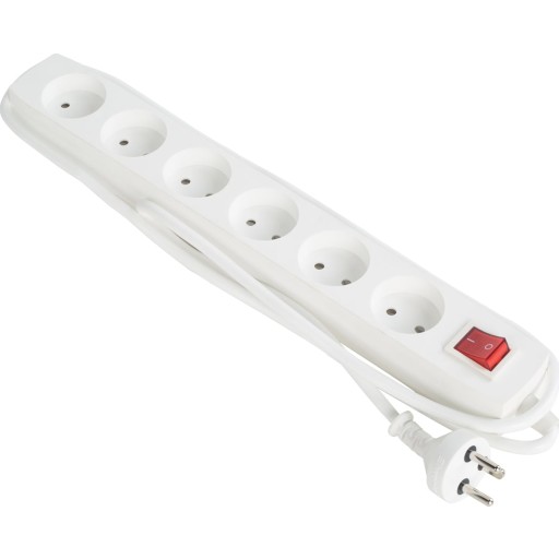 10 stk 6-stikdåse Mj med 3m ledning og afbryder hvid